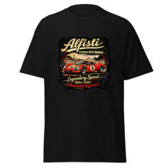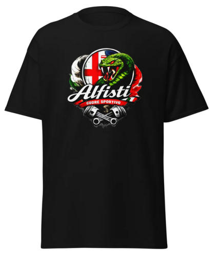 vereint italienische Leidenschaft, ikonisches Design und authentische Motorsport-Kultur. Ob T-Shirts, Polos oder Caps - jedes Stück ist eine Hommage an die legendäre Alfa-Romeo-Tradition und richtet sich an echte Fans, Oldtimer-Liebhaber und alle, die Cuore Sportivo im Herzen tragen.Die Kollektion präsentiert monochrome Racing-Designs, klassische Symbole wie Biscione, Quadrifoglio und Alfisti Logo, sowie moderne Impressionen historischer Alfa Modelle. Hochwertige Stoffe, klare Linien und ein markanter Vitage-Look machen diese Mode zu einem Statement für jeden Alfa-Romeo Enthusiasten - perfekt für Treffen, Roadtrips oder den Alltag.Mit Liebe zum Detail gestaltet, verbindet die Alfisti Kollettion Stiel, Perrormance und Emotion - genau das, was Alfa Romeo-Fans ausmacht.