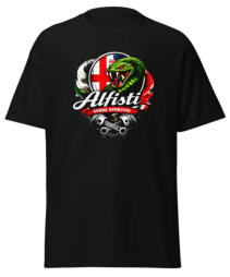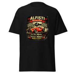 vereint italienische Leidenschaft, ikonisches Design und authentische Motorsport-Kultur. Ob T-Shirts, Polos oder Caps - jedes Stück ist eine Hommage an die legendäre Alfa-Romeo-Tradition und richtet sich an echte Fans, Oldtimer-Liebhaber und alle, die Cuore Sportivo im Herzen tragen.Die Kollektion präsentiert monochrome Racing-Designs, klassische Symbole wie Biscione, Quadrifoglio und Alfisti Logo, sowie moderne Impressionen historischer Alfa Modelle. Hochwertige Stoffe, klare Linien und ein markanter Vitage-Look machen diese Mode zu einem Statement für jeden Alfa-Romeo Enthusiasten - perfekt für Treffen, Roadtrips oder den Alltag.Mit Liebe zum Detail gestaltet, verbindet die Alfisti Kollettion Stiel, Perrormance und Emotion - genau das, was Alfa Romeo-Fans ausmacht.